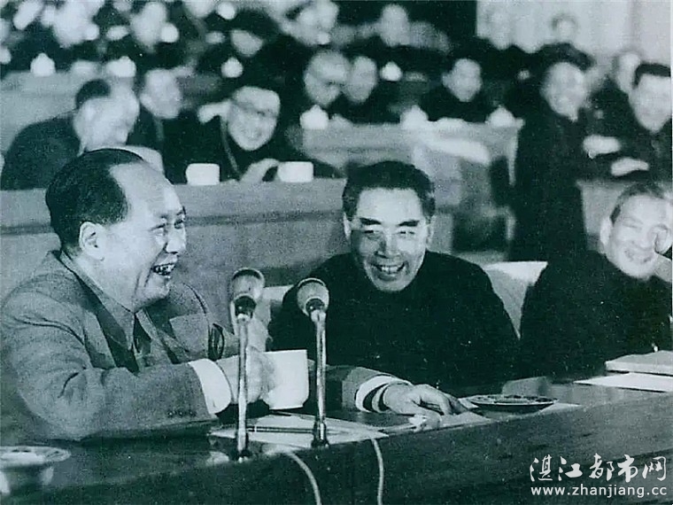 1962年初,毛泽东和周恩来、陈云在中共中央召开的扩大的中央工作会议(即七千人大会)上。