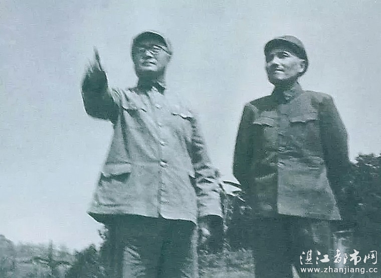 图为刘伯承司令员和邓小平政委指挥渡江准备工作。