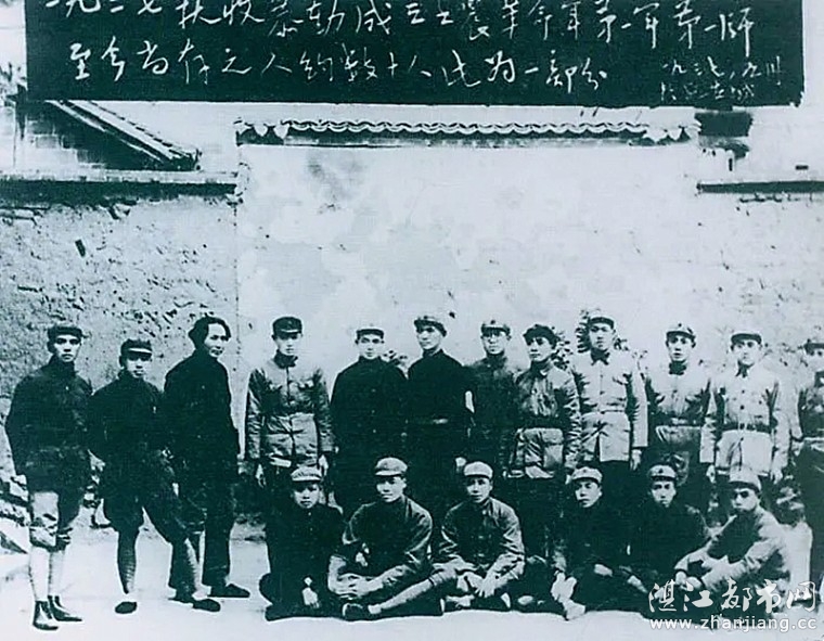 1927年9月9日,以毛泽东为书记的中共湖南省委前敌委员会,领导工农革命军第一师发动湘赣边界秋收起义。图为毛泽东在延安和当年参加秋收起义的部分同志合影。