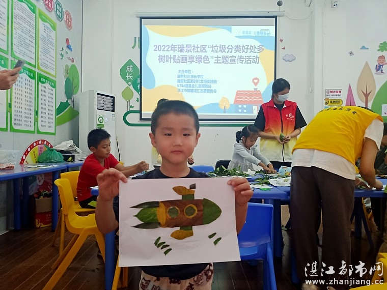 (图/文:何妹、庞美玉) 2022年10月29日下午,瑞景社区家长学校、瑞景社区新时代文明实践站、湛江市情暖湛江志愿者协会和N784壹基金儿童服务站(瑞景社区)联合开展“垃圾分类好处多 树叶贴画享绿色”主题宣传活动,让孩子们在手工制作中,增强自觉保护环境,爱护花草树木的意识。