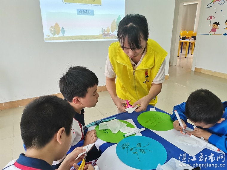 随后,社工带领同学们进行“加一笔变新字”、“看图猜成语”、“考眼力找不同”等趣味小游戏和“纸巾印染”手工DIY制作,帮助同学们进一步树立团队协作意识、增强语言表达能力、丰富课余文化生活,孩子们积极参与,活动现场洋溢着浓浓的快乐和温馨,笑容绽放在每个孩子的脸上。