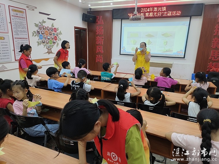图/林思玉 文/王晓欣 折纸是孩子们最喜欢的活动之一,它既能锻炼孩子们手的灵活性,又能开发智力,活跃思维。为了提升他们对折纸的兴趣及动手能力,培养孩子们细心、专心、耐心的良好品质和行为习惯。2024年8月28日下午由共青团湛江市委员会、麻章区志愿服务总队、湖光镇团委、湖光镇创文办、湖光镇新时代文明实践所、湖光镇妇联、湖光镇综合文化站、湛江市情暖湛江志愿者协会、N516壹基金儿童服务站(湖光镇文化站)开展2024年湖光镇“快乐折纸 意趣无穷”主题活动。本次活动有志愿者、家长、儿童共40人参加了此次活动。