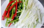 爆好肉丝备用(肉丝用盐、淀粉抓抓放几瓣蒜一起爆)。