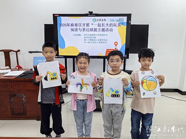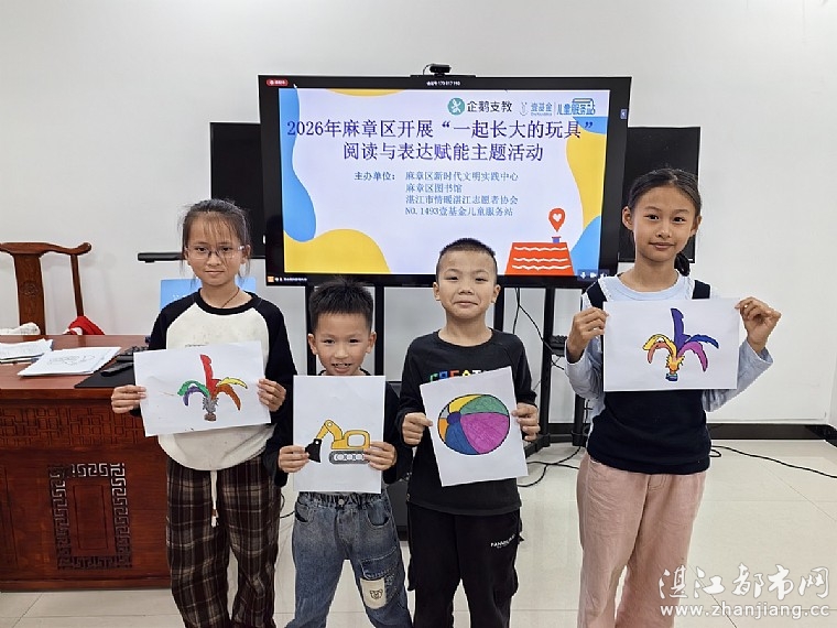 为激发孩子们主动探索文本的兴趣,锻炼语言表达能力,让童年在阅读与分享中温暖生长,2026年1月25日下午,共青团湛江市委员会、湛江市志愿服务联合会、麻章区新时代文明实践中心、麻章区图书馆、晨光公益、晨光文具、湛江市情暖湛江志愿者协会和N1493壹基金儿童服务站开展“ 一起长大的玩具”阅读与表达赋能主题活动。本次活动受益儿童20人,受益家长15人。