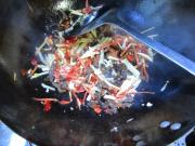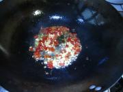 在余油中下入剁椒翻炒。