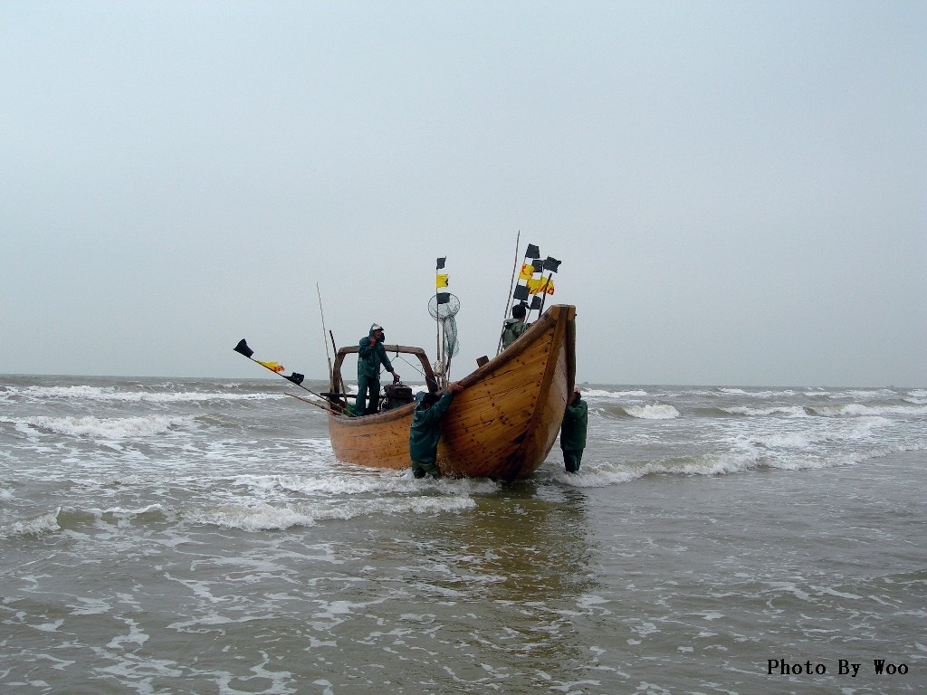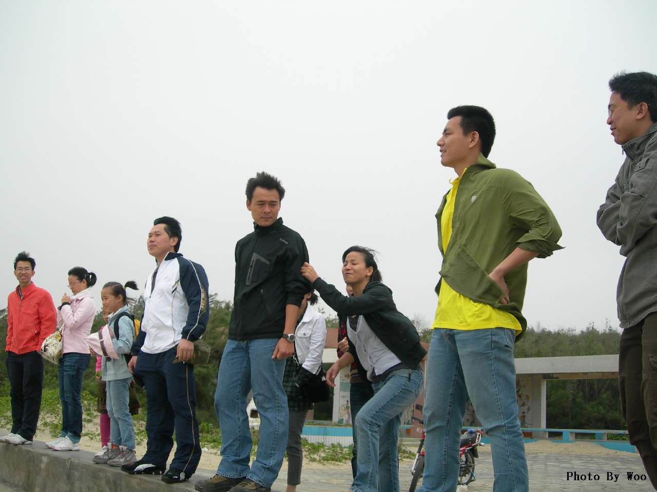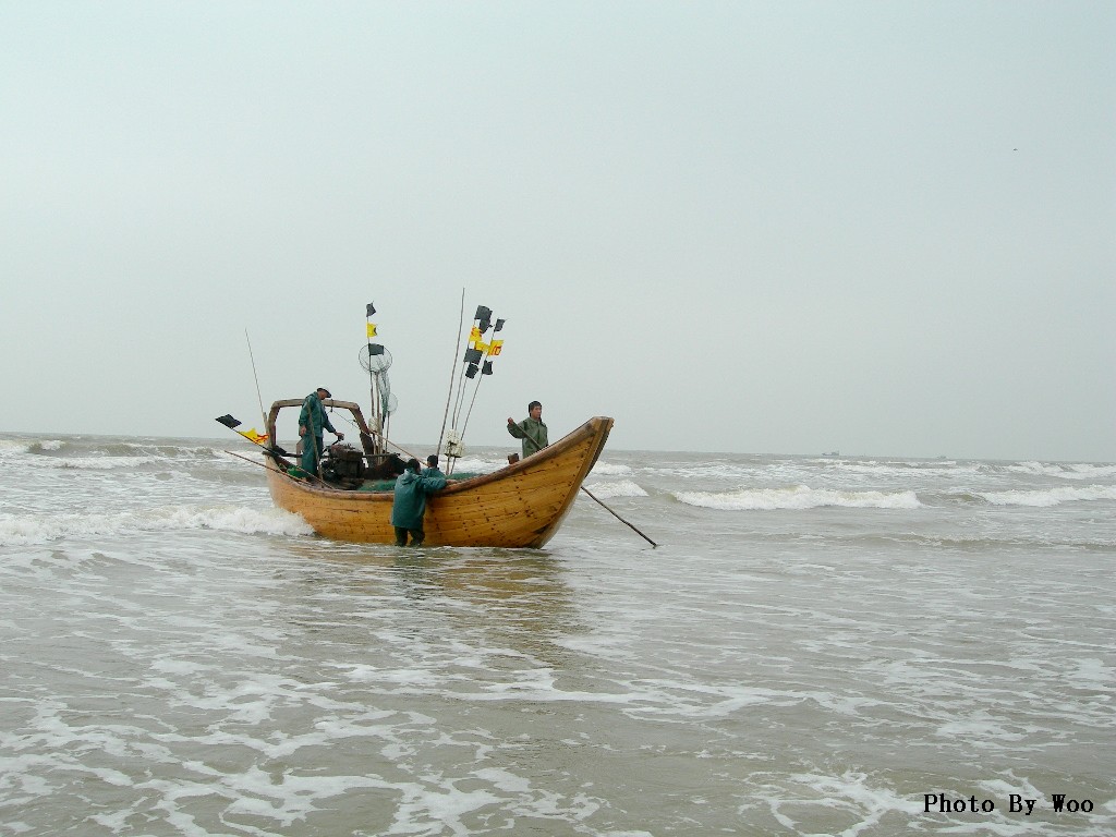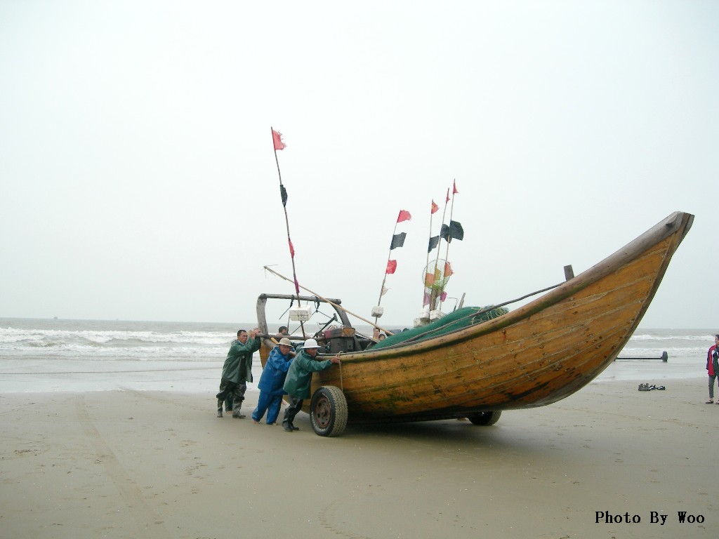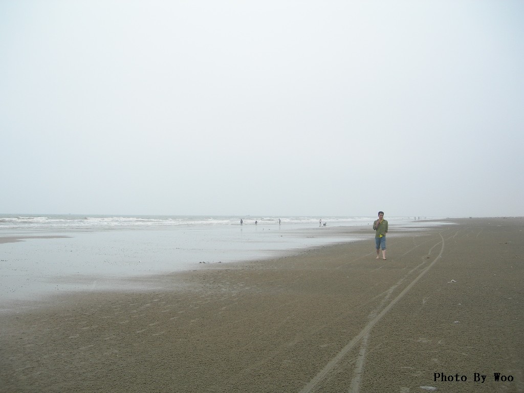 春游海滨,踏沙而行。