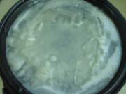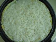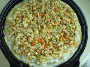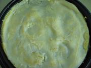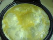 等面糊凝固后,倒入蛋液。