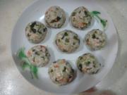 将搅拌好的馅团成一个个丸子。