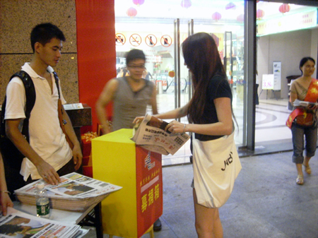 情暖湛江志愿者再次参与了湛江晚报的义卖活动,连同湛江晚报、窝窝团购网、大学生志愿者们一同进入荣基大厦广场进行1元报纸的义卖活动,为重病的一家进行筹款。共得善款6290.7元,成绩不俗,让我们一起来见证,看看善良的人们,听听有趣的故事……。