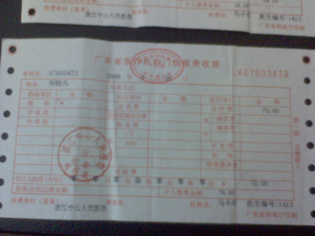 9月26日入院例行检查376.70 交款人:陈雄文,证明人:上官