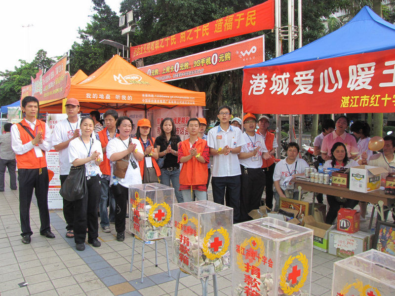 图文:帝国海军 港城与玉树心连心 2010年5月3日,湛江市嘉信茂广场、世贸广场涌起爱的海洋,由湛江市红十字会组织,在情暖湛江志愿者服务队、湛江中学联盟的协助下,“抗震祈福,我们与玉树在一起”义演义卖募捐活动在港城如火如荼的举行。 “一方有难,八方支持”是中华民族的光荣传统,也是中华民族团结的象征。2010年4月14日清晨7时49分,清海省玉树藏族自治州玉树县发生的7.1级地震,牵动了全国各族人民的心。天灾无情人间有情,为帮助藏族同胞们早日重建家园,为表达港城人民对灾区藏族同胞的关怀,红十字会主办的募捐活动,得到港城爱心企业、商家及爱心人士的大力支持,活动顺利进行,共募集到捐款共计26000多元。 以下图片为世贸广场那感人的瞬间: ![]() ![]() ![]() ![]() ![]() ![]() ![]() ![]() ![]() ![]() ![]() ![]() ![]() ![]() ![]() ![]() ![]() ![]() ![]() ![]() ![]() ![]() ![]() ![]() ![]() ![]() ![]() ![]() ![]() ![]() [此贴子已经被作者于2010-5-5 19:10:55编辑过]