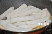 起汤锅,加水烧开,加入年糕大火煮开后,再转小火煮三分钟。