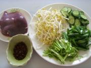 猪肝切薄片、豆芽洗净、黄瓜切片、芹菜切段、蒜苗切段备用。