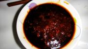 辣椒酱2勺加老抽1勺和料酒1勺调成辣椒酱汁。