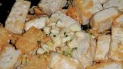 老豆腐洗净沥干水份切块。