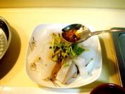 主料: 纯绿豆淀粉 100克 盐 2克 清水 800ml 拌料: 鲜辣椒 1个 辣椒油、蒜蓉、香醋、鲜酱油、黄瓜丝、香菜末 各适量