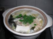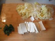 把洗净的娃娃菜切成一小段(娃娃菜是小版的大白菜,娃娃菜口感细腻润滑);香菜切粒;豆腐切片或块状都行。