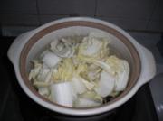 调入食用油,放入娃娃菜煮3分钟。(娃娃菜比白菜容易煮嫩)