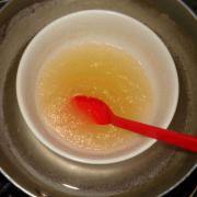把10克鱼胶粉加上冰水充分给搅拌均匀了 然后隔水煮化。