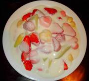 最后加上了无蔗糖的酸奶 没办法 老公最近体重直线飙升 只能用酸奶混合了 (如果用椰汁西米露 再加上两个冰激凌球就更好吃啦)。