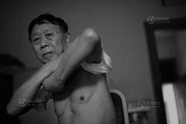 “他现在大脑已经开始萎缩,记忆逐步在消退,甚至连生活都不能自理。”陈邦栋的儿子陈道柱一边帮父亲擦脸,一边告诉记者,“头上和身上中了十几刀落下严重的后遗症,大脑萎缩不算,还常常大小便失禁,现在整天呆在家里,请了一个阿姨在陪护,出去了也认不得回家。”
