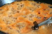 黄油加色拉油,炒蒜末和洋葱末,加入虾 头爆炒。