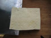 用刀在豆腐柱上横切,切出一张豆腐皮。