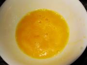 鸡蛋打入碗中,加入少量盐、几滴香油、一点点料酒打成蛋液。