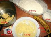 普通面粉260g,黄油50g,马苏奶酪50g,白糖60g,熟透香蕉一个,白开水45g,酵母2g,水泡酵母备用,蛋黄。