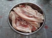 在五花肉的一端切一刀口,留着拴晾晒的绳子。