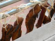 把腌制好的腊肉拿到外面通风处晾晒即可。