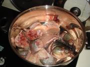 处理鱼,把鱼肉片成片备用,剩下鱼尾,鱼头和鱼排煮汤。