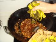 葱姜蒜爆香,加入郫县豆瓣超出油来加入肉馅炒熟,再把酸菜放入(酸菜之前是要洗的哦,不洗太咸了