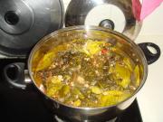 炒好的酸菜放进鱼骨汤的锅里,继续煮~。