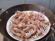 蒸好的虾去壳沾酱汁吃,鲜美至极。