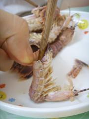 把尾部最外面两个小脚拧断,然后捏着尾部轻轻往上一折,再拧掉。