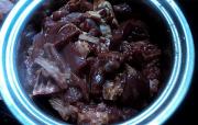 鸭子去皮切块用十三香生抽芝麻油腌制数小时。
