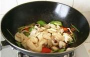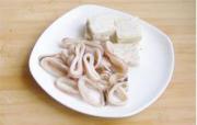 鱿鱼 200克 鱼豆腐 6块 青红椒 各1个 杏鲍菇 60克 西芹 1根 葱 姜 干辣椒 3个 海鲜酱 1汤匙 蚝油 1汤匙 料酒 1汤匙 生抽 1汤匙
