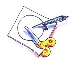 2.小心地用圆规的针尖在圆心上扎一个孔,把画好的圆剪下来。