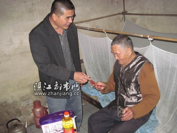 我们还去看望了林叔。瘫痪的林叔一直牵动着我们的心。尽管这次慰问名单上没有他,但我们还是觉得去看望他,让他开心下。WOO和葵哥去买了蛋糕和牛奶,俺样特意去买了肠粉,只因林叔因长时间不与外界接触,在他眼中肠粉也是天下最好吃的东西,能吃上几口肠粉,他眼睛也发亮。听说林叔现在是由女婿送饭,一天有时候是一餐,由于林叔大小便不能自理,所以林叔没穿着裤子,连被子也是那薄薄的被单。我们去的时候,那张薄被单已经是湿的。我们A1A2组的组员马上有人提议去给林叔买床新的被子,大家的心都揪得很痛,这么冷的天啊,这么可怜的人!