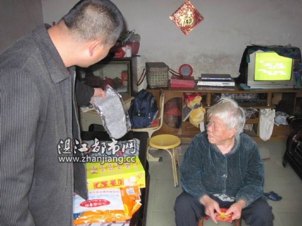 大家给老人送上了礼物.(房子实在太小了,连站两个人都站不下)
