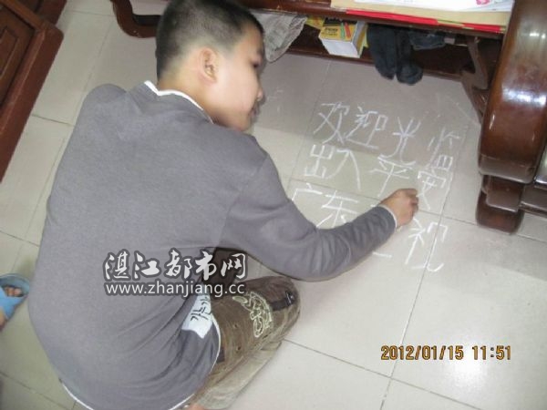 小宁看到我们到来,开心的在地上写了"欢迎光临,出入平安"不要小看这几个简单的字,这可是对于小宁来说了不起了.