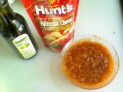 首先准备自制面酱。如果没买意式面酱,也是这样来制作做面酱,味道是一样的,将番茄划十字破皮放入开水烫掉外皮,然后切细碎,锅里热橄榄油,翻炒牛肉碎和洋葱粒,然后倒入番茄碎,再加入买的袋装意大利面酱(没有就加入番茄酱),加少许盐,黑胡椒粉。自制面酱就做好了。