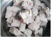 把炒过水的 排骨再用水冲洗一下,完全去掉肉腥气,沥干水分。