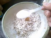 往搅均匀的面盆里放入半勺大料粉,一勺盐,搅匀。(根据自己口味添加)