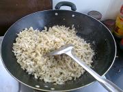 用锅铲翻搅。拨烂子的表面微焦就可以出锅了。