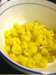 倒入剁碎的泡椒,翻炒,炒至泡椒半干。