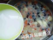 锅置火上加少许油放蒜瓣煎香,倒入高汤烧开。