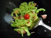 倒入苦瓜,加少许盐,快速翻炒