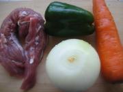 准备青椒、胡萝卜、洋葱、胡萝卜洗净备用,猪里脊肉备用。